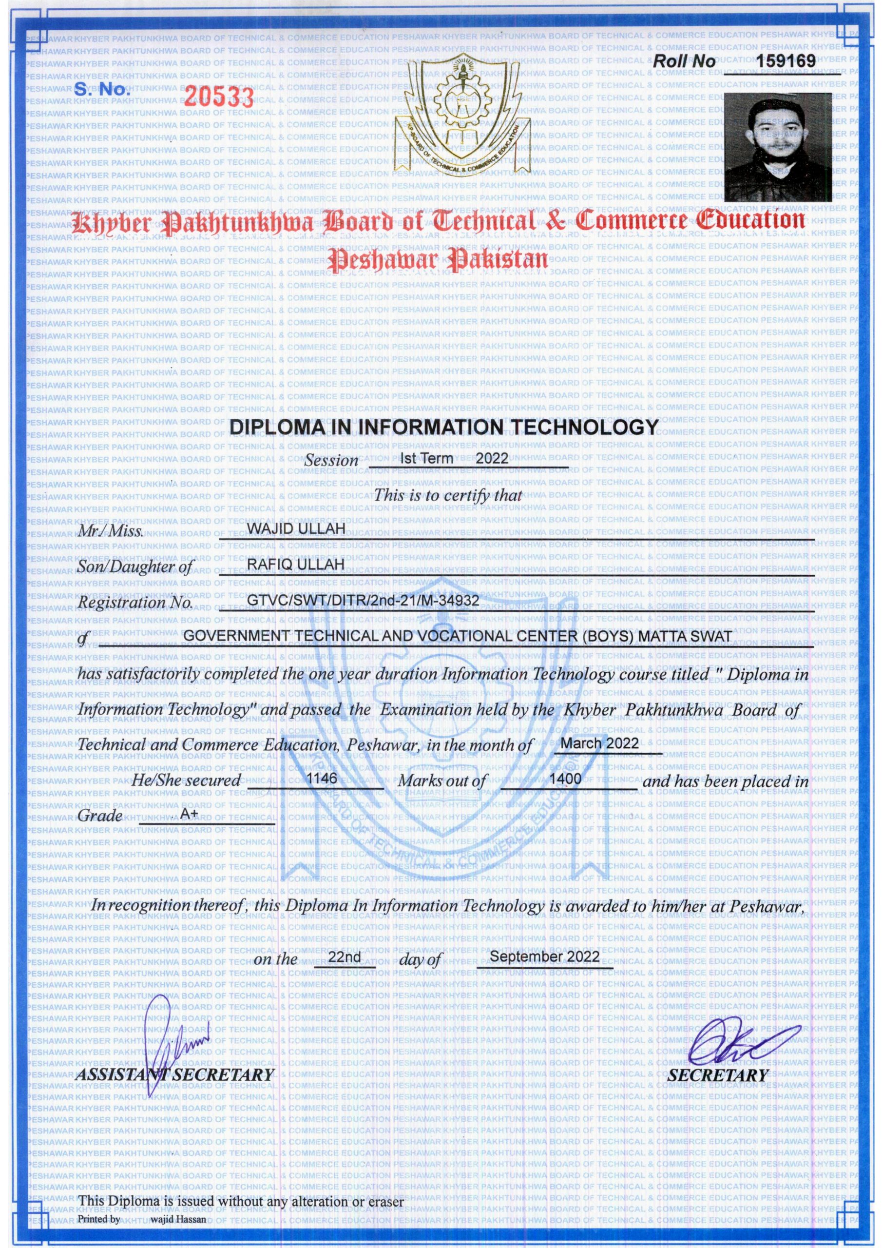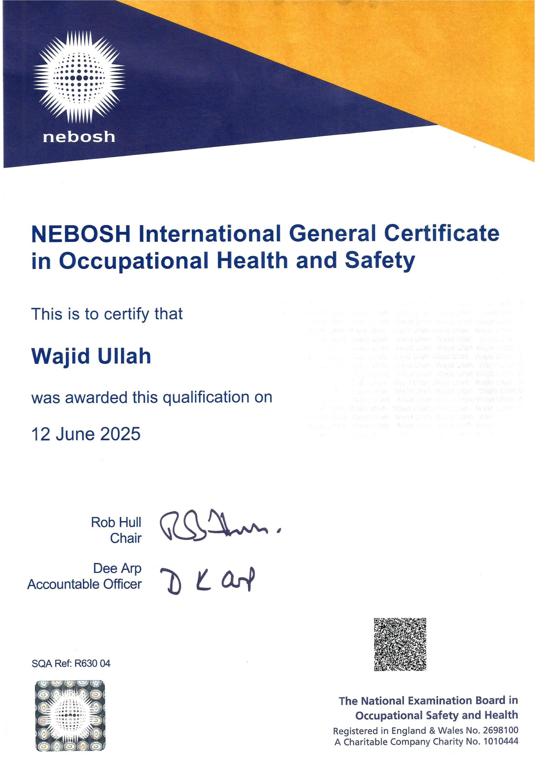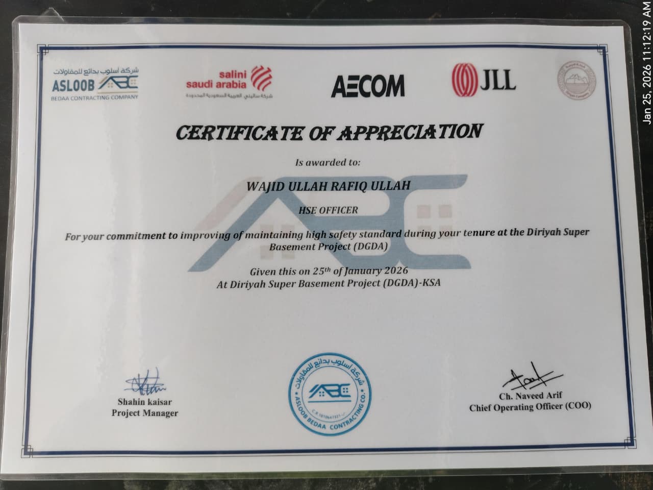 Wajid Ullah Safety Officer Award Wajid Ullah NEBOSH Certificate Safety Supervisor wajidullahhse.com DIT-Diploma-In-Information-Technology- wajidullahhse.com